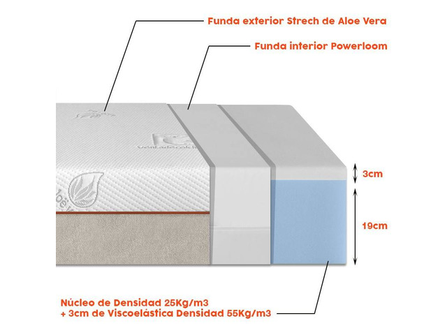 Se vende un buen colchón viscoelástico visco 3 nuevo tiene mucha dureza estabilidad y es extra firme se adapta a la postura correcta normal del cuerpo sus medidas son 105×190 centímetros incluye una funda desinfundable con tejido y tratamiento de aloe vera se podría ver y probar . Interesados llamar al TELF: 631527940